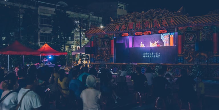 我們承接各類型演出邀約,包含傳統民戲、節慶活動與商業演出製作。依據不同場域與觀眾結構,調整劇目內容與演出形式,讓布袋戲在保有傳統精神的同時,也能自然融入當代的觀看情境,完成一場被記住的現場。